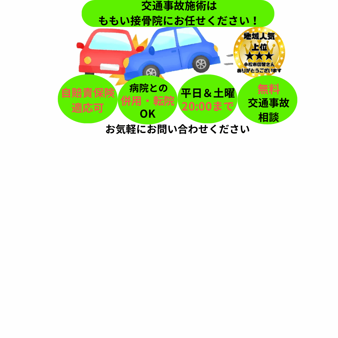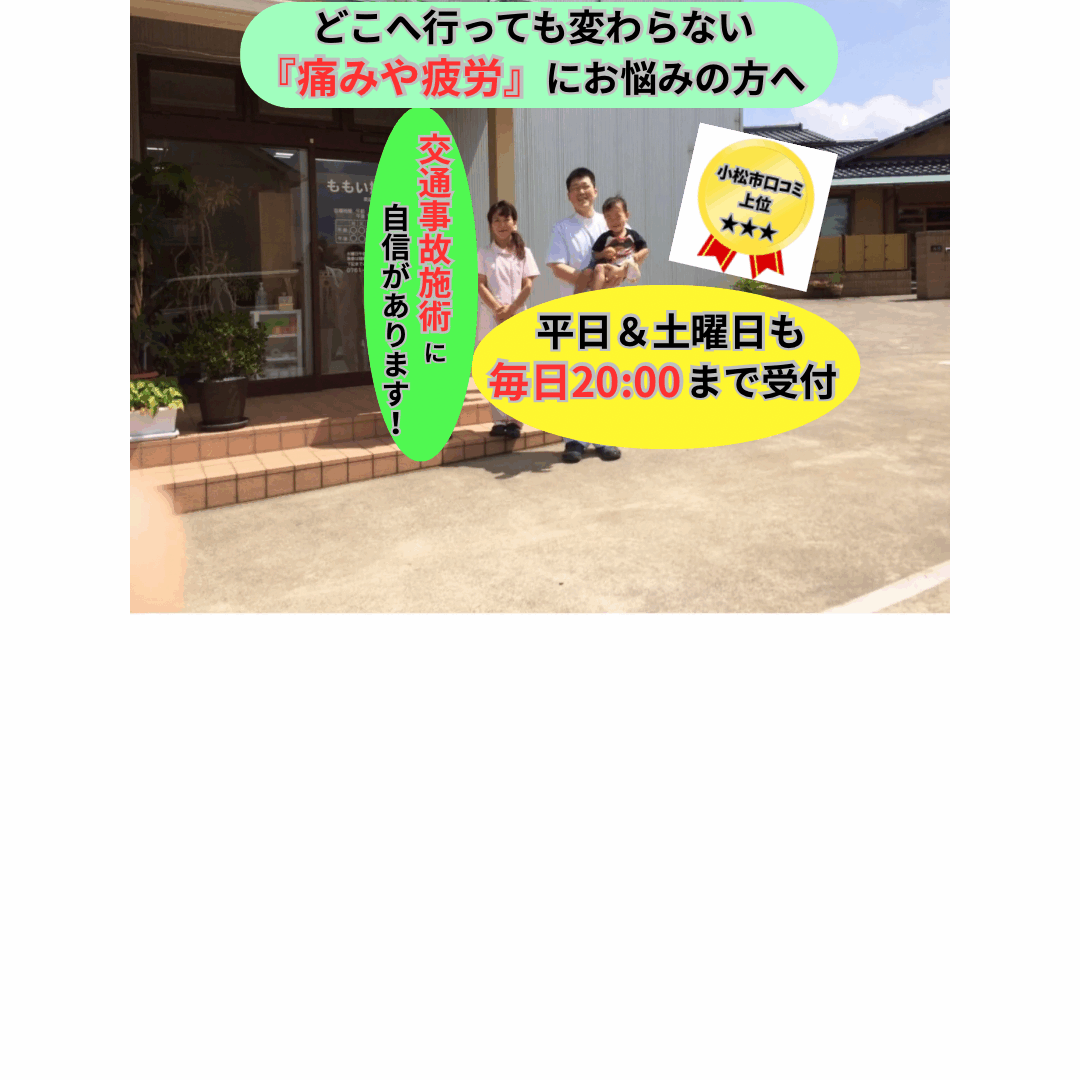 骨盤矯正についてお悩みの方は、小松市にある、ももい接骨院まで、お気軽にお問い合わせください。